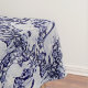 Blue and White Rabbit Floral Dedham Delft Tile Tablecloth