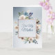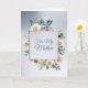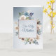 Here's a very pretty, feminine Mother's Day card with a stunning floral frame of blue and white roses on the front. A shiny rose gold square frame is bordered with the flowers, and your custom text is in blue at the center. The image and text are placed on a gradient blue silver background. The inside left has the same background with another blue and white rose bouquet image. Your custom text is in matching blue on the right side; use the sentiment included or easily customize to your own. Elegant!