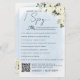 Encourage your guests to help you capture every unforgettable moment with this elegant I Spy Wedding Game sign. Designed with a soft blue watercolor background and delicate white roses, this sign invites friends and family to snap photos and videos of special moments throughout your big day. Guests can simply click the QR code and upload their memories—because love is even sweeter when seen through the eyes of your favorite people.