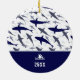 Add a touch of the ocean to your family Christmas tree with this custom blue and white shark pattern holiday ornament. Ornament has cute sharks swimming in the sea and your little one's first name and the year.
