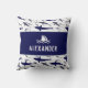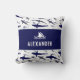 Blue and White Shark Pattern with Name Boy Throw Pillow