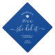 Blue and White She Did It Calligraphy Graduate Graduation Cap Topper