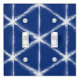 Blue and White Shibori Lines Pattern Light Switch Cover