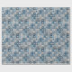 A quilt showcases intricate patterns resembling snowflakes, each block featuring unique blue and white designs