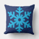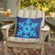 Blue beautiful snowflake on one side, a white snowflake on the other side. Dark blue background. Funny outdoor throw pillow. Fill free to use the Customize button to change the color of the background and to apply color Filter to images. Do not forget to choose another style and size of the pillow. Winter season, holidays, Christmas and New Year theme. Have fun.