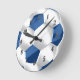 Blue and White Soccer Ball Round Clock
