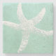 A starfish coaster with a white starfish and pale blue background.