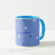 Painting of blue and white stars on a blended light blue background, with a placeholder for your message, is printed on custom mugs. Easily customize the text on the template form.