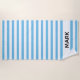 A striking striped beach towel with blue and white stripe pattern. Personalize with your name.