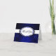 Blue and white thank you card with light and dark blue stripes and a white ribbon going across saying "thank you".