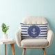 Blue and White Striped with Anchor and Custom Name Lumbar Pillow