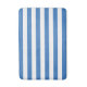 Custom bath mat with a preppy stripe pattern in blue and white colors. Use the design tools to choose any background color, add your own text or upload photos to create a one of a kind design to match any bathroom decor.