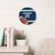 American football players, grid iron fans and football team coaches whose team colors are dark blue and white will enjoy this design featuring a sports jersey style design in dark blue with white stripes and customizable text for their name and number. A football is also featured as part of the design. Made in part from graphic licensed and © Graphics Factory.com.