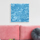 An intricate swirl and wave are mixed in varying shades of blues. Large and small blue circles are surrounded by larger swirls.
