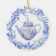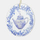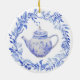Blue and White Tea Pot with Wreath Ceramic Ornament