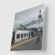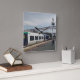 Blue and white train square wall clock