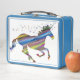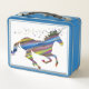 This colorful Unicorn graphic will delight any child who likes horses and unicorns. These sturdy vintage metal lunch boxes are very popular now, as they were year ago!
