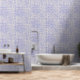 Transform your space with our exquisite peel and stick wallpaper. This captivating design combines timeless Mediterranean charm with modern convenience. The design features a symmetrical arrangement of floral motifs and geometric shapes on a stone-look texture. Imagine delicate petals intertwining with geometric lines, creating a harmonious dance across your walls. The color palette is soothing and elegant. Shades of blue/lavender and off-white blend seamlessly, evoking a sense of calm and sophistication. Elevate your living room, bedroom, or home office. The wallpaper’s vintage allure pairs beautifully with both classic and contemporary furniture.