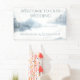 Blue and White Wedding Reception Banner designed with a winter scene of soft falling snow with blue woodland accents. The text includes: Welcome To Our Wedding, and The Bride & Groom's First Names. To personalize, simply insert your names into our easy template, replacing the sample. Be sure to view the entire Blue and White Winter Snow Wedding Collection. Enjoy!