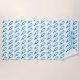 A pretty beach towel in white with a pattern of funny blue wine or champagne bottles on it. Add your name or other text to it.