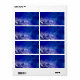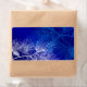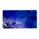 Winter holiday art with an elegant pattern of pine boughs and pinecones in blue and white on an icy background of blues and violet.