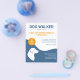 Stylish blue and white dog walker business template with a touch of orange color. The price is placed over an orange circle for an eye-catching detail. There is also Destei's white dog head silhouette. The dog resembles a Labrador Retriever breed dog. Personalize the sample text areas with your business info.