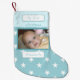 Blue and white with stars photo and name first small christmas stocking
