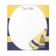 A wonderful notepad for anything from love notes to writing a grocery list. It has a blue and yellow striped border and a megaphone at the bottom that says Cheer on it. You customize the text at the top.