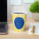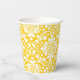 A sunny golden yellow and white damask pattern motif gives these paper party cups a sophisticated air white a base of easy to personalize text lets you create a completely unique and one of a kind party cup that will give your event the high-end and extra special touch guests and brides to be crave.
