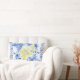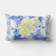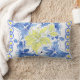 Light Blue and Yellow floral design with border on rectangular pillow. Perfect for spring decor, light and airy with traditional tones