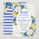 Blue and Yellow Flowers & Gold Frame Bridal Shower Invitation