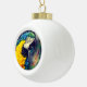 A watercolor painting of a blue and yellow Macaw. Happy holidays! in the jungle, Beautiful exotic christmas, birds in the christmas tree.