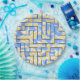 A colorful blue and yellow maze is a fun design for kids, day care providers and teachers.