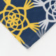 Fleece blanket with a large snowflake print in blues, yellow, white, and platinum gray.