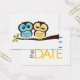 Cute blue and yellow owls wedding save the date announcements