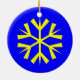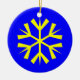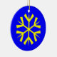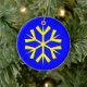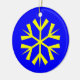 This blue ornament features a bright yellow snowflake on each side. Add text to this customizable ornament for that personal touch.