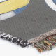 A quality printed throw has its advantages. This is a much finer weave throw than its loopier cousins, and though lighter, it is worth the investment for custom room accessorizing. The back is much prettier than the typical brown, and the fringe on the long sides very vivid, the selvage nicely done. Before photographing, I washed the throw in cold water, delicate, with a thicker woven throw the same size. On tumble dry low, this throw was dry in half the time as the other. This is a very practical quality if you use throws for furniture covers or to wrap up in frequently. The sleekness of the fabric makes it a great layer for accenting or protecting without the feeling of sitting on too much stuff. Perfect for napping or when you feel a light chill coming on. The color printing is beautiful and on this fabric, matched the design and color of my Photoshop image. This is an advantage for blending room fabrics and colors. The fringe on the short sides prints the colors from the design image and therefore varies from the side fringe. I streaked a white fractal line through the plaid pattern to give the illusion of weaving. This printed as crisp as an illusory thread, and put some white in the short side fringe, showing another advantage of print vs loomed- for artistic purposes, line lines, detail, and color integrity can be planned and preserved. My loomed throws have color limitations and more of a needlepoint texture. Print throws reproduce an exact image. The throw felt a little stiff straight out of the package, but this went away in the first delicate wash. Of course I searched the wash water for ink or bleeding and there was none.