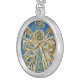 This is the white, gold, and blue angel painting from a series of seven angel paintings on different sized canvases. Angels in the series include white, yellow, green, blue, purple, red, and orange angels. Pick your personal guardian angel color. Products with this angel color series make great gifts for Christmas and other special events or holidays! Personalize this angel painting silver necklace with your own image and text using the "Customize It" button.
