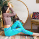 Blue Aqua Abstract Pattern Monogram Active Leggi Leggings