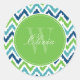 Blue Aqua Green Zigzag Ikat Pattern Monogram Classic Round Sticker