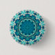 Blue Aqua Mandala Rosette Retro Hippie Button