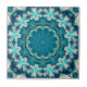 Blue Aqua Mandala Rosette Retro Hippie Ceramic Tile