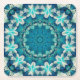 Blue Aqua Mandala Rosette Retro Hippie Square Paper Coaster