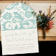 Blue Aqua Mint Green Victorian Damask Wedding Invitation