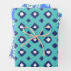 Blue, Aqua & Mint Tribal Diamond Ikat Pattern Wrapping Paper Sheets