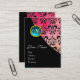 BLUE AQUAMARINE DAMASK MONOGRAM, fuchsia pink Business Card
