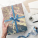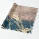 Blue Aquatic Teal Gold Marble Rose Bridal Glitter Wrapping Paper