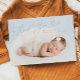 Simple birth announcement card featuring a white arch frame with your newborn's picture. The text says "thank you" in script font with a heart.