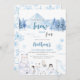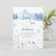 Get ready for a frosty celebration with this Blue Arctic Animals Birthday Invitation. Featuring playful arctic animals, icy blue snowflakes, snowy blue mountains, and wintry pine trees. This design creates the perfect scene for a magical winter birthday bash. Ideal for a boy's winter party or any arctic-themed celebration, this invitation brings together cool tones and adorable details for a celebration that's snow much fun! BRT188