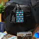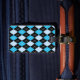 Stylish luggage tag with a classic blue, black, and white argyle pattern, on the front. The back of the tag is done in solid black, with white custom text. Personalize the text to suit your needs. Matching travel products are available.